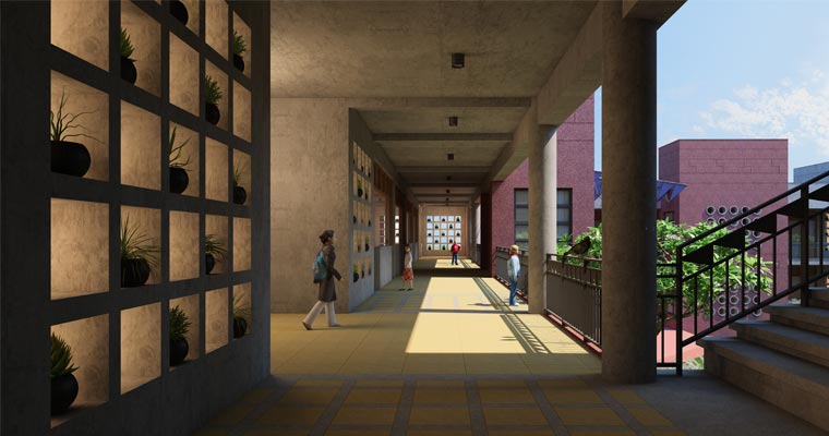 The Architect - Chaitanya Sinhar & Associates (CSA) ensured in his design to reduce the carbon footprint by providing an Energy Efficient Design by creating Transparencies and creating Indirect Lighting Enclaves such as to reduce the Classroom temperatures by upto 4 Degerees than external temperatures.